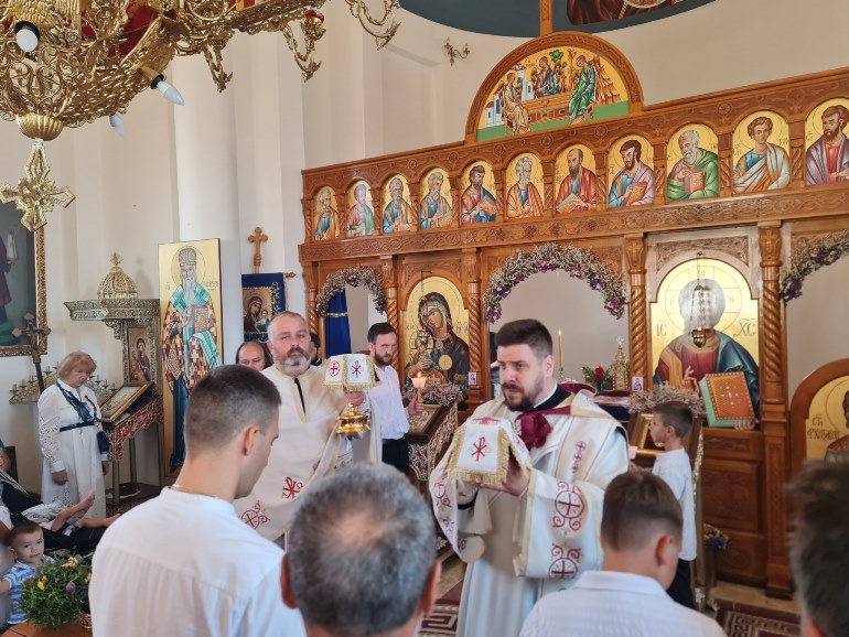 Свету литургију служио је презвитер Драгољуб Мајсторовић, архијерејски намесник кулски, протојереј Илија Зекановић, парох куцурско-савиноселски, уз саслужење других свештеника Српске православне црве. Уз бројни верни народ литургији су присуствовали Милан Глушац и Јован Ковачевић, председник и заменик председника општине Врбас.