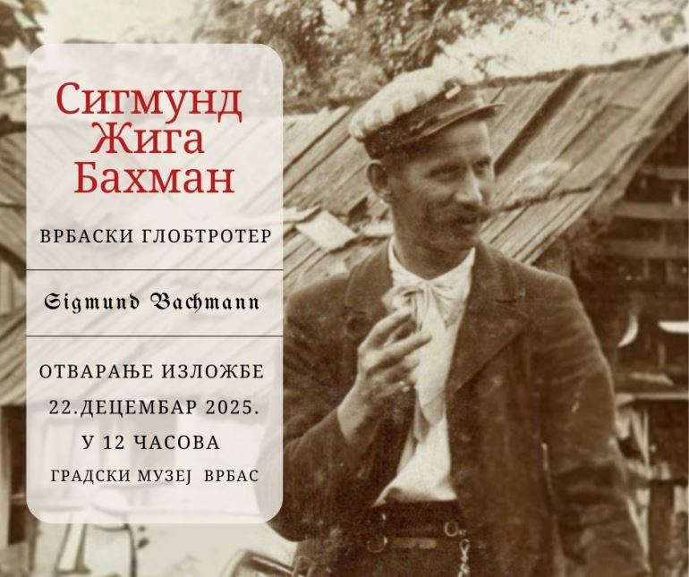 Градски музеј Културног центра Врбаса припремио је за понедељак, 22. децембар у 12.00 часова. отварање изложбе посвећена Сигмунду Бахману, рођеном Врбашанину, који је крајем 19. века обишао свет на бициклу. Сигмунд Бахман (1864-1928), звани Жига, обавио је светску бициклистичку турнеју "Преко пет континената" у периоду од две године (1896-1898) и тако постао први Врбашанин и први бициклиста са простора тадашње Аустроугарске монархије који је бициклом обишао свет.